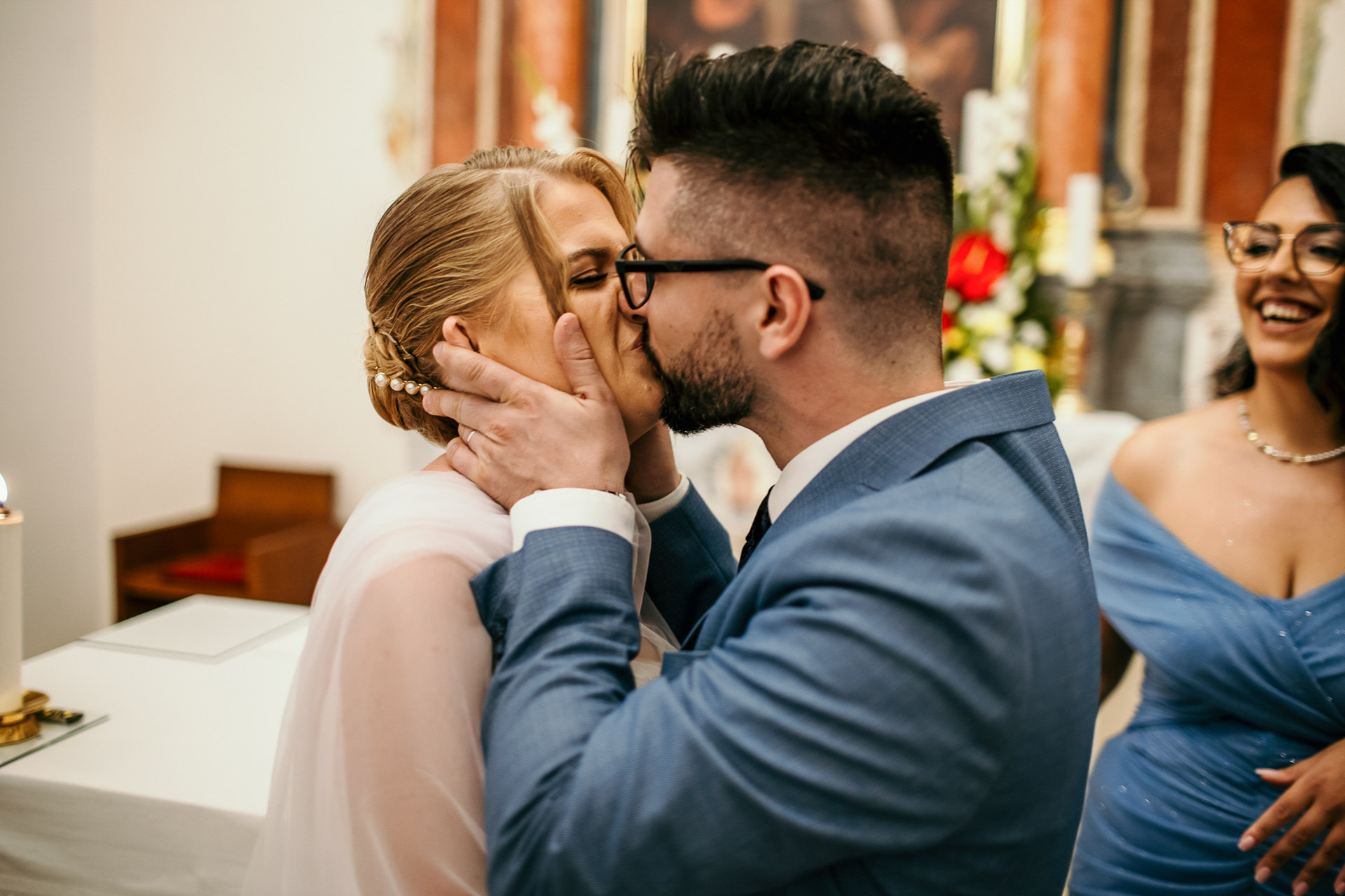 From the villa, we moved to a historic church, where the couple exchanged vows surrounded by loved ones. The solemnity of the ceremony, combined with the church’s rich history and stunning interiors, added a layer of depth and meaning to their special day. The gentle glow of candlelight and the couple’s heartfelt emotions created a truly spiritual atmosphere.