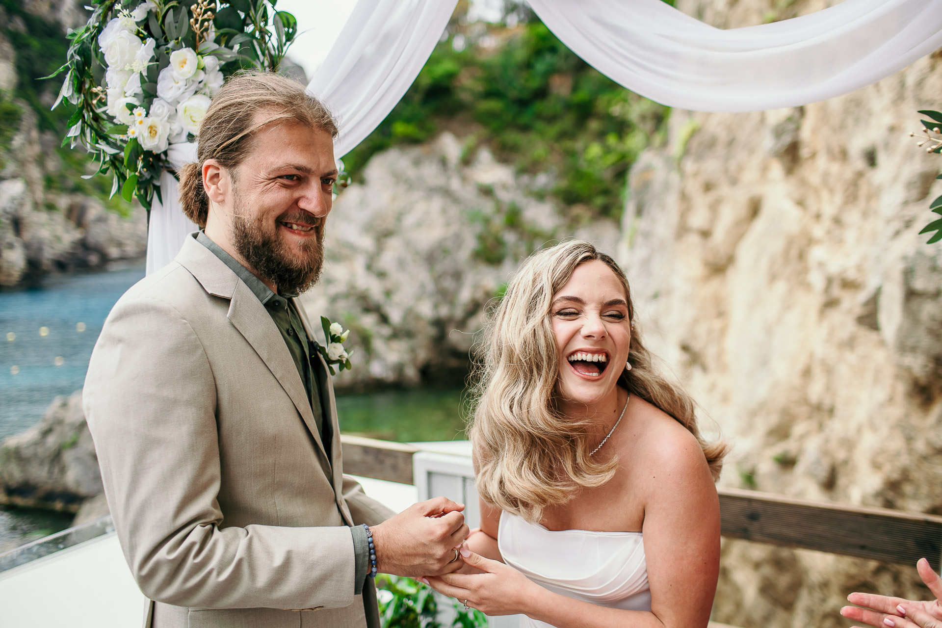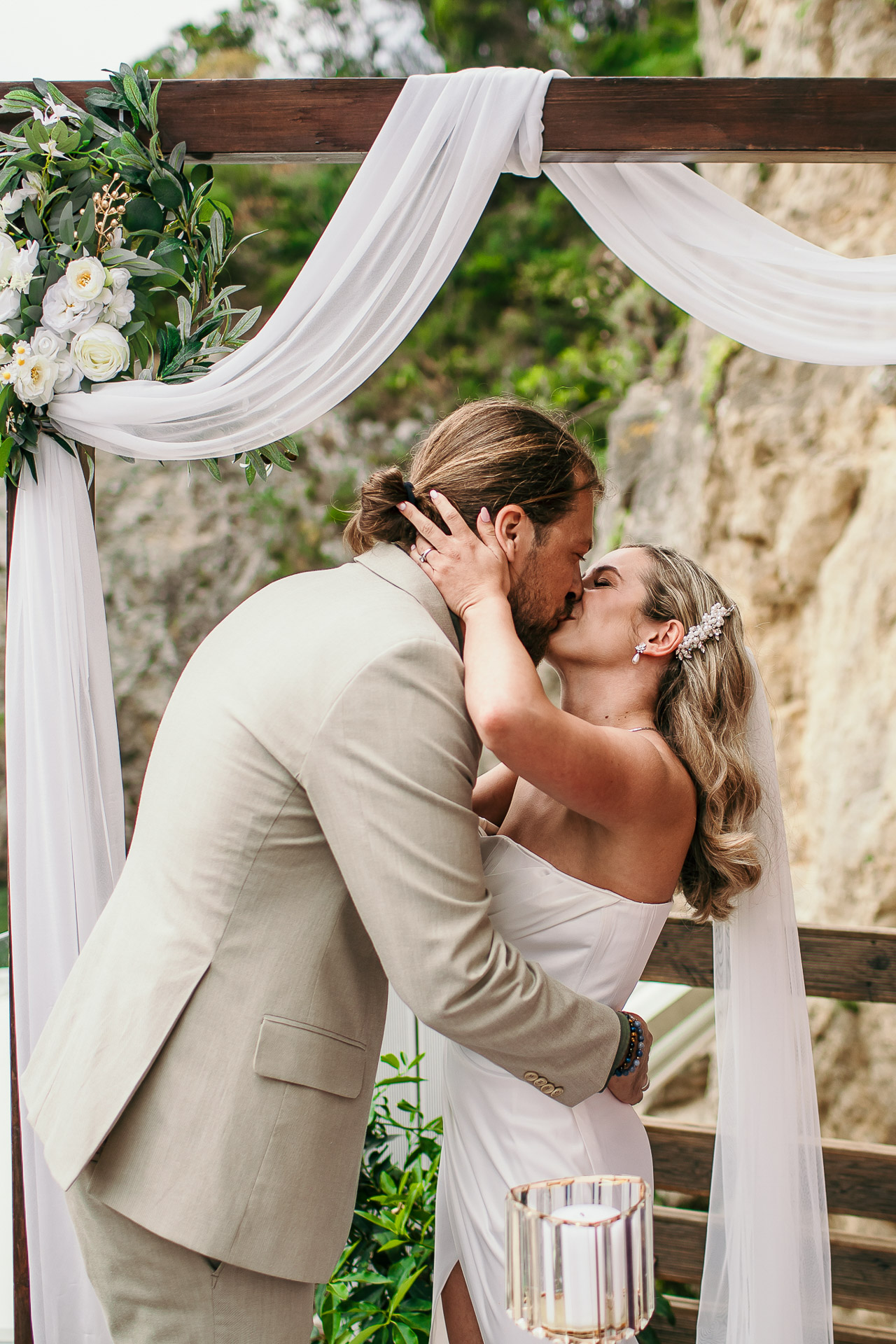 This beautiful celebration was an intimate affair, with only the closest circle of friends and family present. Set against the backdrop of the stunning Ionian Sea, the ceremony radiated warmth, emotion, and simplicity — the kind that makes your heart slow down just enough to take it all in.